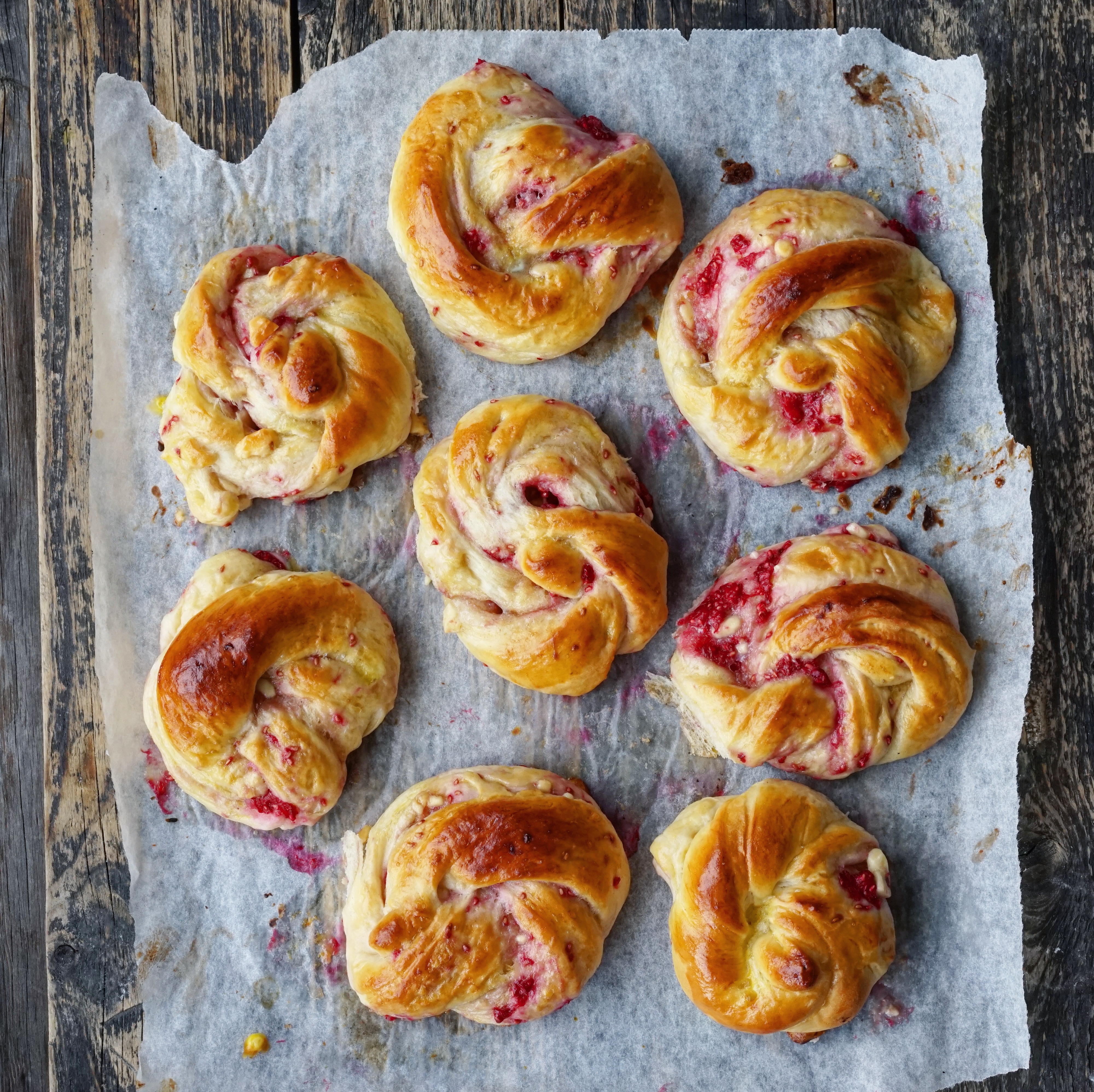 Jeg blir aldri lei hvetebakst.. Hvem blir egentlig det..?! Hva med å lage deilige hveteboller med hvit sjokolade og bringebær? En uslåelig kombinasjon.